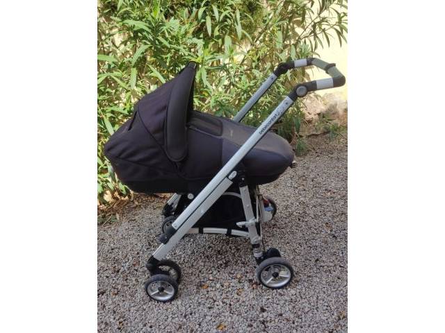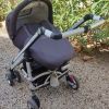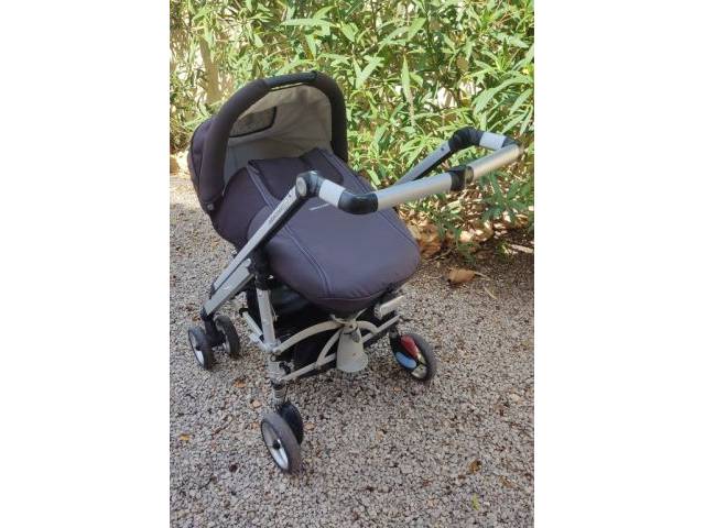 Vendo un cochecito en color antracita. Lamentablemente el chasis ya no se puede plegar, porque en la barra de empuje se ha atornillado un tornillo de conexión diferente, ver foto. Por lo demás el cochecito está en buen estado, ya que ha sido cuidado. Para nosotros como abuelos ha cumplido su función.