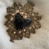 Cojines de terciopelo muy decorativos en grande (42 x 40 cm) y pequeño (19 x 19 cm) en azul claro, cada uno con medalla de metal