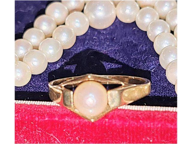El anillo es de oro de 8K de 2,73 g con una perla de Akoya