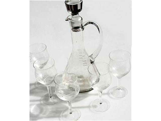 Decantador con mango de vidrio de cristal grabado Vintage Colony con tapón