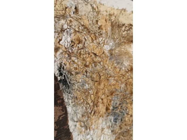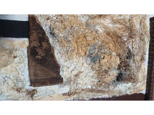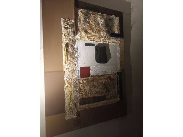 A la venta: pintura acrílica autopintada en tonos marrones con varios materiales naturales