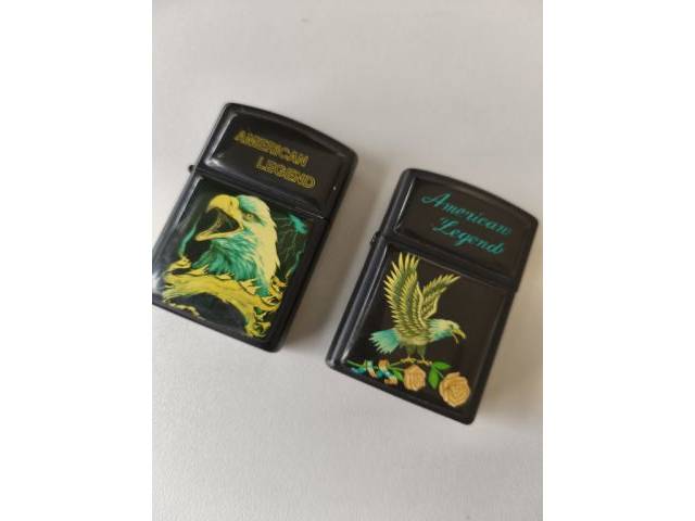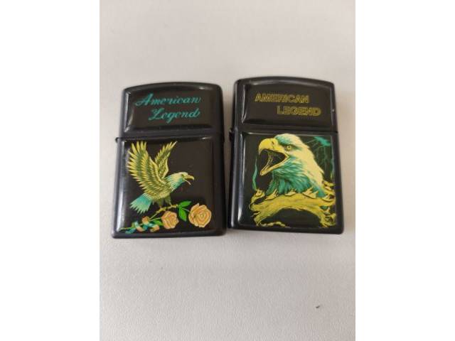 2 mecheros tipo Zippo, con águila y el lema "American Legend"