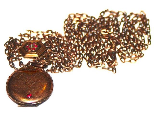 Medallón Fotográfico Art Nouveau Doble de Oro con Granate,