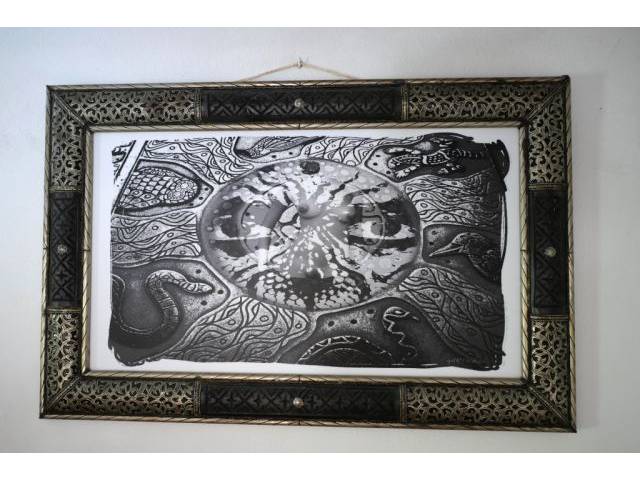 Se trata de PhotoArte, creada por gARThIbiza, un artista que se ha trasladado recientemente de Ibiza para residir ahora en Mallorca. Es una pieza única, el arte creado a partir de tres imágenes, por Garth. La imagen es muy especial y lo que es visible, cambia a medida que te acercas a ella.
