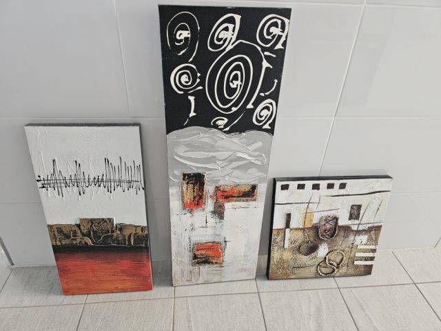 Los 3 lienzos juntos 12€, los 3 pequeños 2 o 1 euro,