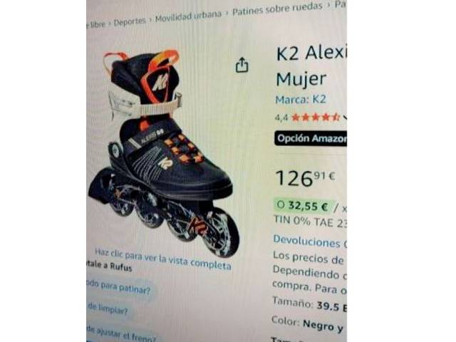 Vendo patines en línea talla 39, 39,5 de la marca K2, muy cómodos, solo usados una vez, buen estado...
