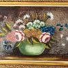 pintura antigua, bodegón floral, óleo original sobre lienzo, firmado