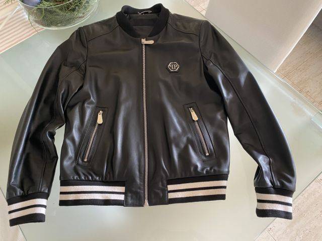 Muy exclusiva, chaqueta de cuero para hombre Philipp Plein casi nueva, confeccionada con la mejor piel Nappa.