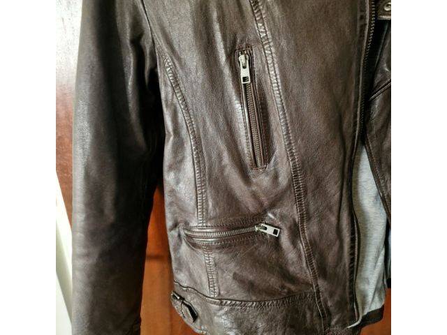 Chaqueta de cuero para mujer de la marca OAKWOOD nunca usada, comprada en Zalando, lamentablemente mal comprada, marrón oscuro, varios bolsillos exteriores, un bolsillo interior, muy alta calidad, forro interior, laterales y cuello con hebillas ajustables, talla L-XL (información del fabricante 2XL, pero es significativamente más pequeña.