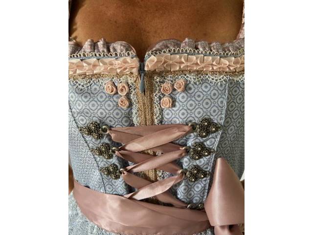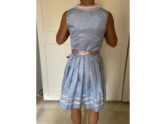 Puede hacer realidad un sueño para usted con este dirndl tradicional de alta calidad en azul claro, compuesto por dos piezas. El hermoso dirndl de alta calidad así como el delantal transparente que combina perfectamente con elaborados bordados.