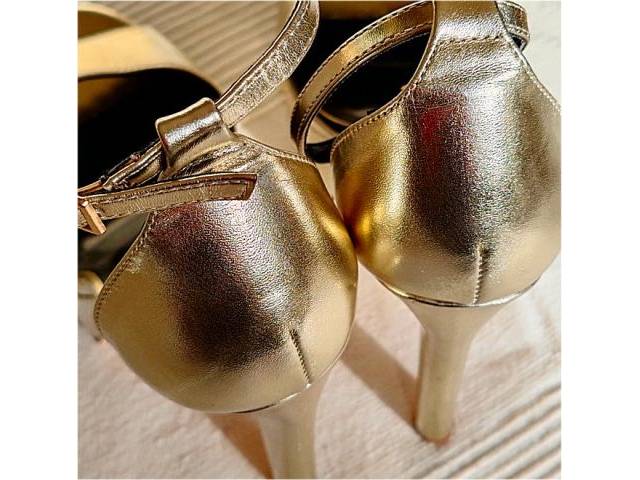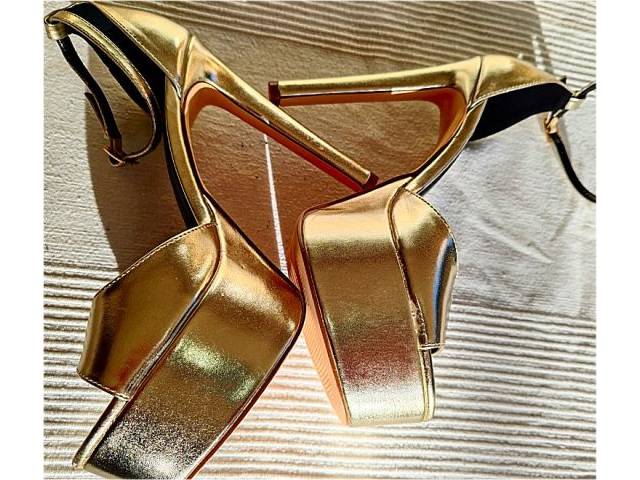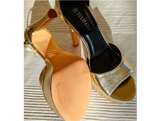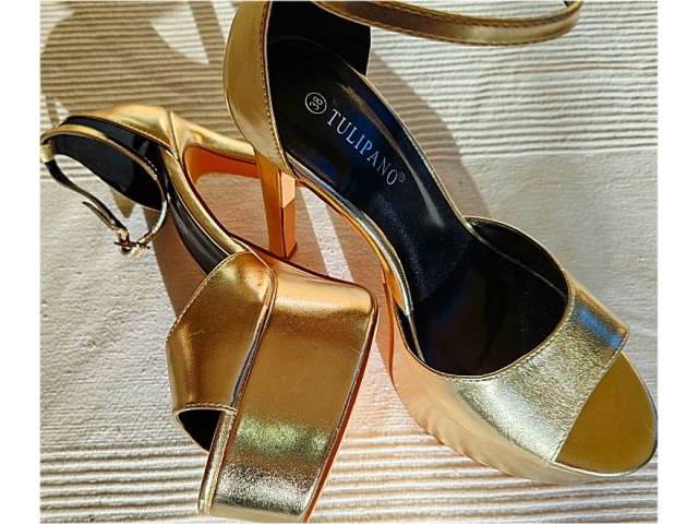 Sandalias plataforma de tacón alto doradas de la marca Tulipano, talla 38, como nuevas