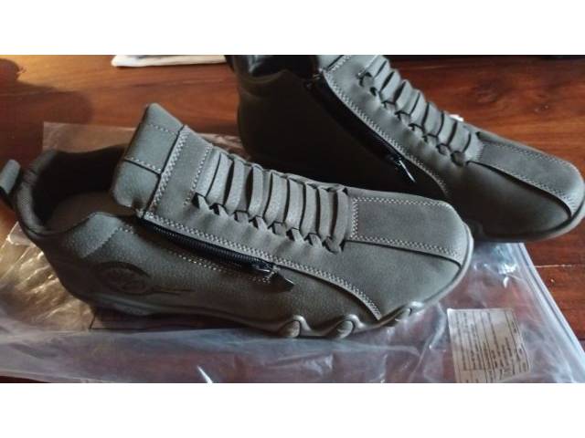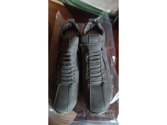 Nuevos zapatos deportivos grises de hombre ( todavía en su embalaje original ) en talla 44 -- pero más bien 43.