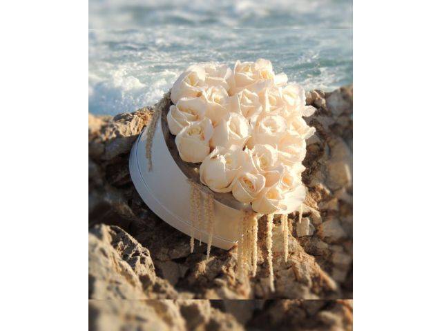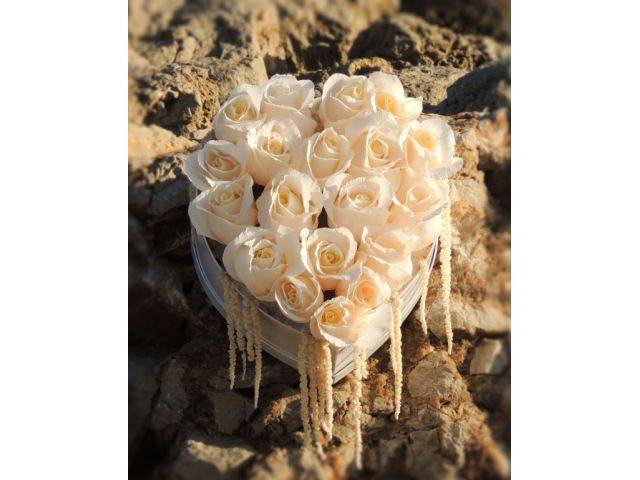 💝Caja en forma de Corazón con rosas de papel de color blanco y amarantus preservado💝 35€