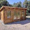Nuestras casas están hechas de abeto nórdico seleccionado. La madera no está tratada, es robusta y se adapta perfectamente al clima mediterráneo. Las juntas de las esquinas del chalet proporcionan estabilidad y paredes resistentes al viento. A partir de un espesor de pared de 40 mm, también le ofrecemos aislamiento profesional de techos con tableros OSB, aislamiento y doble Tela Asfáltica para proteger de manera óptima su casa contra el calor y la humedad.