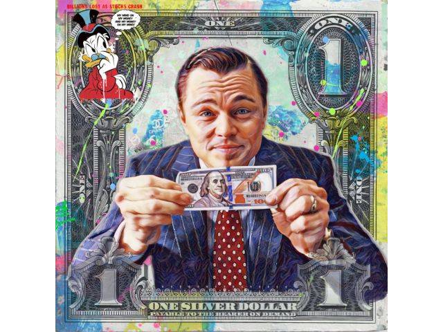 Título. El lobo de Wallstreet con un billete de 100 dólares