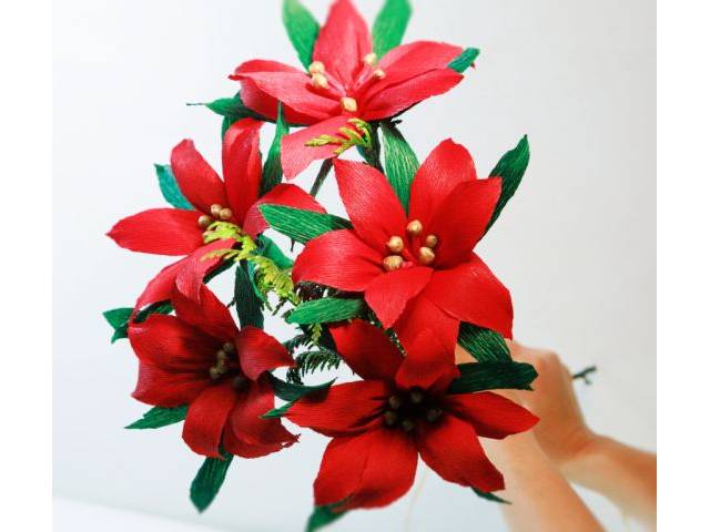 Flores eternas rojas o blancas, elaboradas artesanalmente en papel crepé