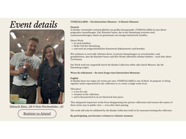 El 28 de noviembre de 2025, la Kinsky Collection of Contemporary Art te invita a su exclusiva vernissage otoñal y fiesta de arte – #THEFALL2025.