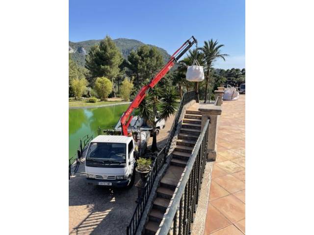 🏗 LKW mit Kran zum Sammeln von Taschen und wir haben auch Container für Schutt, Schnitt, Holz und Sperrmüll....