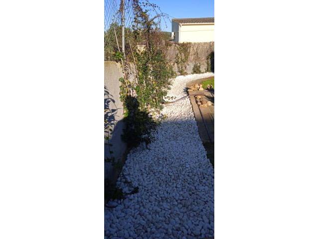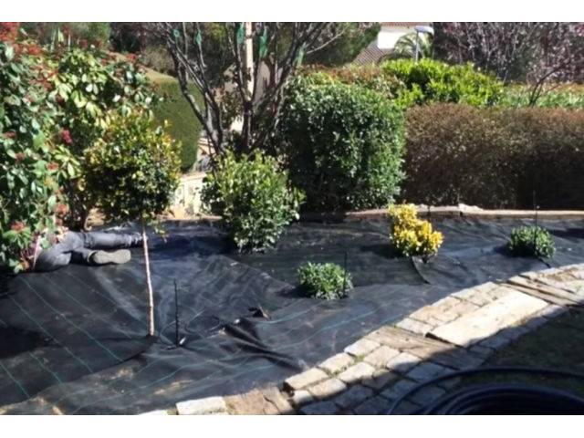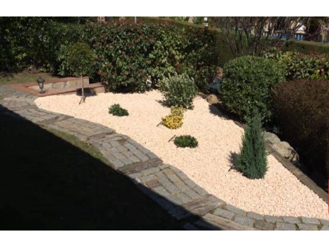 Wir führen die Platzierung von Anti-Unkraut-Netzen, die Platzierung von Kies, die Platzierung von Felsbrocken durch.