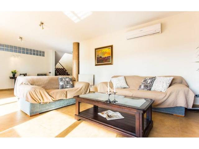 Ausstattung: Gute Bauqualität, Steinzeug-Fliesenböden im Erdgeschoss und Holzlaminat im ersten Stock, Doppelverglasung, Aluminium-Fensterläden, Solaranlage, Trinkwasseraufbereitungsanlage, Sat-TV und spanische TV Kanäle, WiFi-Anschluss über Glasfaser von 50 MB, elektrische Heizkörper in allen Räumen, 4 x AC ( heiss – kalt ) im Wohnzimmer und 3 Schlafzimmern, Hängematten, Kinderbett und Babystuhl vorhanden sowie Bettwäsche und Handtücher.