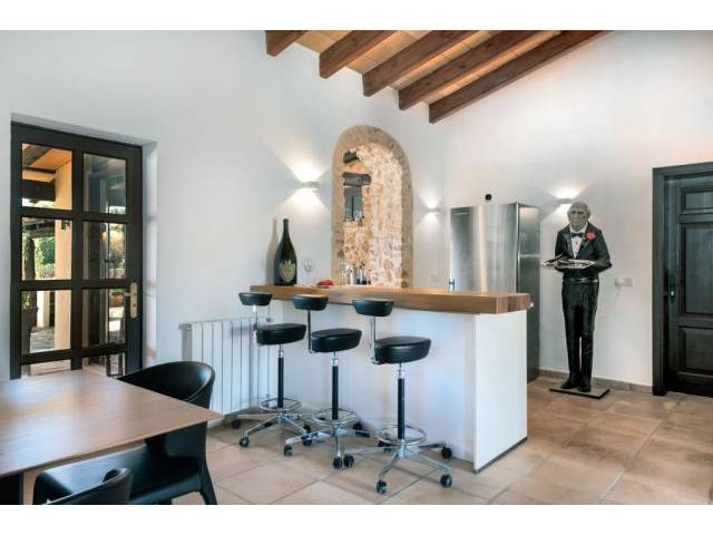 Diese außergewöhnliche Finca bietet höchsten Wohnkomfort in absoluter Privatsphäre in der Nähe von Llucmajor. Die harmonische Verbindung aus traditioneller Natursteinarchitektur und modernem Design schafft ein stilvolles Ambiente mit mediterranem Charakter.
