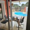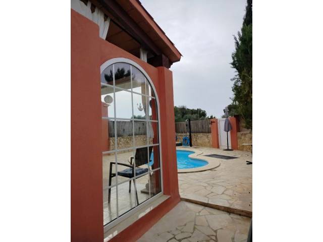 Im Untergeschoss gibt es ein DZ mit Einbauschränken, Toilette mit Dusche. Wohnzimmer mit Schiebetüren zum Ausgang auf die überdachte Terrasse und Küche mit Ausgang auf die überdachte Terrasse und den Pool und Garten.