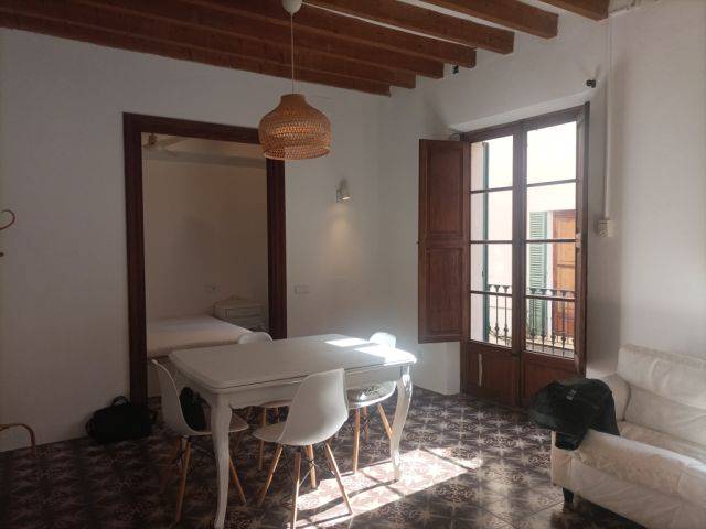 Diese 2-Zimmer-Wohnung in Palma strahlt viel Charakter aus und liegt verborgen in einer verkehrsberuhigten Gasse im Herzen der historischen Altstadt von Palma. Symbolisch für die maurisch geprägte Architektur der Altstadt sind die schmalen gepflasterten Straßen mit hohen Stadthäusern auf beiden Seiten. Im Gegensatz zu manchen Wohnungen in diesen Straßen schafft es diese 2-Zimmer-Wohnung in Palmas Altstadt mit Südostausrichtung und zwei kleinen sonnigen Balkonen, die groß genug für kleine Tische und Stühle sind, viel Tageslicht einzufangen. Mit hohen Decken, freiliegenden Balken und gefliesten Böden bietet diese Wohnung einen echten Eindruck vom Erbe der Altstadt von Palma und einem Boutique-Stadtzentrum-Lebensstil.