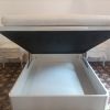 Das Hauptschlafzimmer hat direkten Zugang sowohl zum Wohn-Esszimmer als auch zum Badezimmer. Im Bettrahmen ist viel Stauraum verborgen. Außerdem gibt es einen Kleiderschrank und Nachttische mit Lichtschaltern auf beiden Seiten des Bettes.
