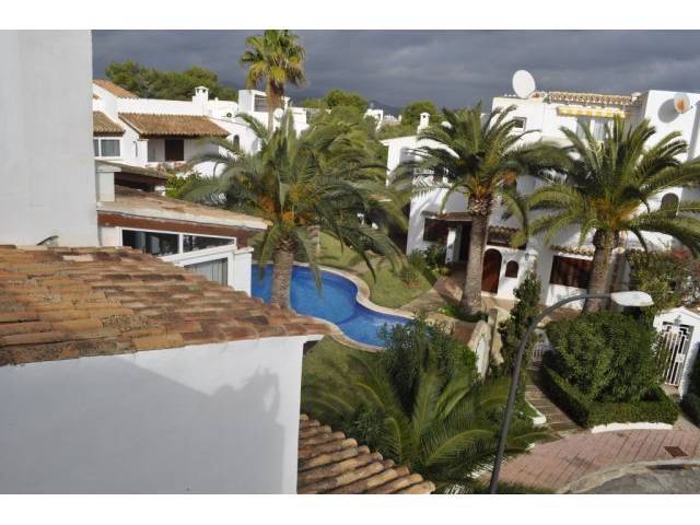 Der Gemeinschaftsgarten mit den vielen Pools ist im hinteren Bereich der Anlage, welche insgesamt 9 Wohneinheiten beherbergt. Parkplatz in der Anlage.