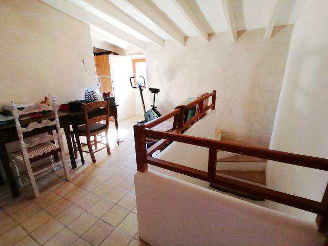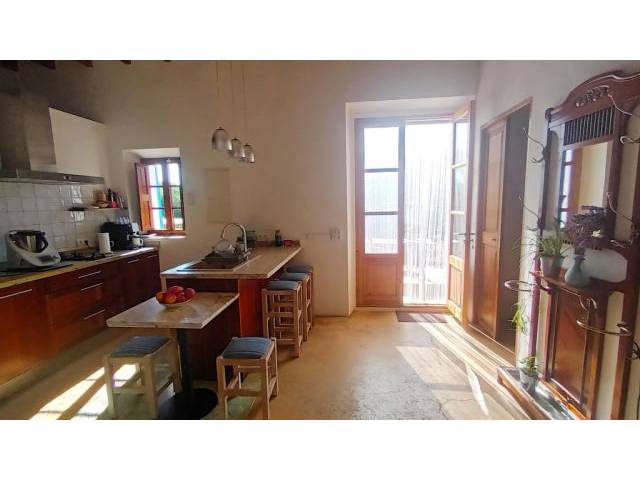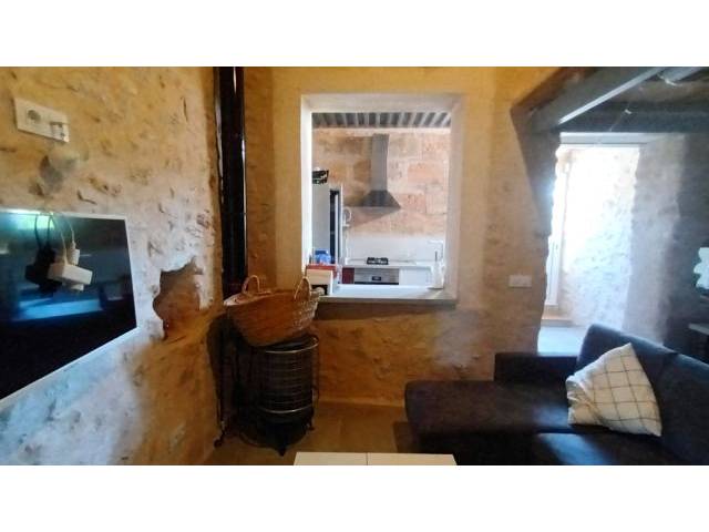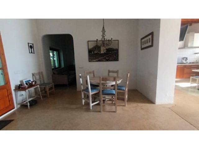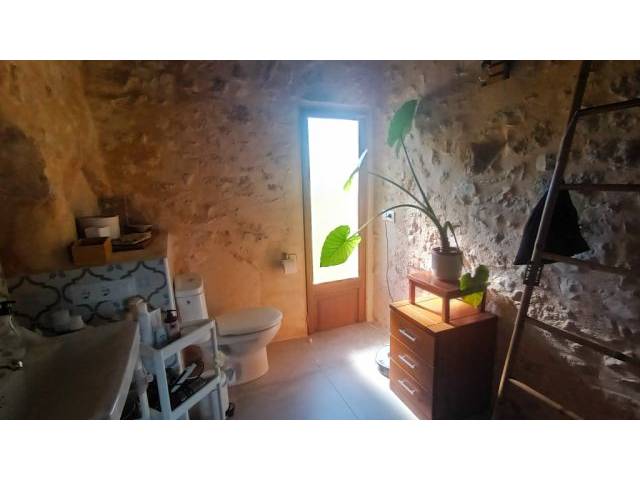Ausstattung: 2 Zisternen (eine eigene für Trinkwasser und eine wird mit Nachbarn geteilt – 1 Zisterne ist direkt mit der Küche verbunden, so dass kein Kalk entsteht, in der unteren Etage ist alles noch mit ursprünglichen Fussböden versehen ( ähnlich wie Microzement ) Heiswassertherme von 300 l sowie eine Ersatztherme von 70 l, Doppelverglasung, Holzpersianas, Internet via Fibra-Glasfaser von Movistar, TV Buchsen in allen Schlafzimmern. 1 x A/C im Haupthaus, 1 x AC im AP ( weitere A/C oder elektrische Heizkörper können seitens des Mieters installiert werden ) – da aber sehr dicke Mauern – besteht hier ein sehr gutes Raumklima- im Sommer kühl und im Winter warm - zumal in der 1. Etage das Dach isoliert ist. Alarmsystem vorhanden. Unmöbliert - aber auf Wunsch können einige oder alle Elektrogeräte und Kamine sowie ein paar Möbel übernommen werden.