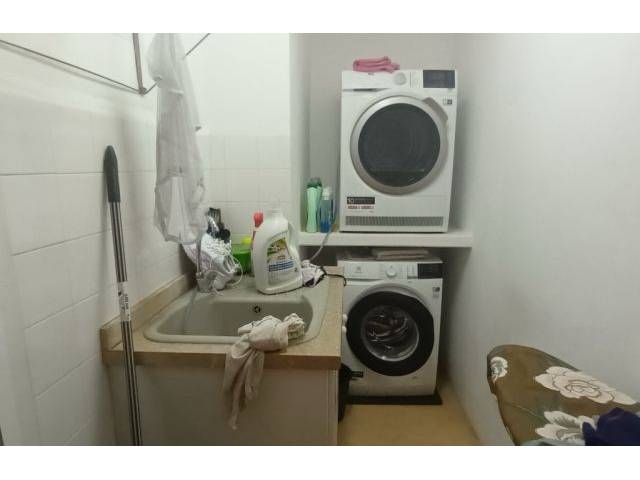 Es gibt 2 Eingangsbereiche ( eines ins Esszimmer und eines direkt in die moderne Einbauküche, welche mit Kühlschrank, keine Spülmaschine, Mikrowelle, elektr. Ofen und 2 Gaskochfelder und 2 Induccionsplatten ausgestattet ist. Dahinter liegend eine halboffene praktische Vorratskammer mit viel Stauraum.