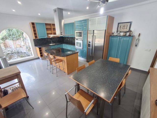 Grundstück: Uneinsehbares, ummauertes und teileingezäuntes Grundstück von 14.119 m2 mit elektrischer Toreinfahrt, pflegeleichter Garten mit vielen Pflanzen und Zitronenbäumen ums Haus, Aussendusche, BBQ Bereich, eine grosse überdachte Terrasse von ca. 35 m2 in Parterre und eine weitere der gleichen Grösse in 1. Etage - unüberacht und welche auch vom Garten aus zugänglich ist, eigene Parkplätze, kleiner Innenhof. Der fast ovalförmige Pool von 14 x 3 m liegt etwas abseits des Hauses - ca. 100 m2. Nordwest orientiert. Asphaltierter Zugangsschotterweg mit einigermassen starken Neigung, da auf fast auf dem Berg liegend.