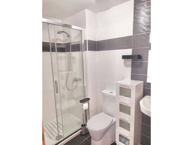 Die Wohnung hat zwei Schlafzimmer, und zwei Badezimmer (eines en suite)