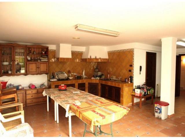 In der Parterre befinden sich eine rustikale, braune Einbauküche mit Cerankochfelder und alle weiteren Haushaltsgeräten. 1 Schlafzimmer, 1 Badezimmer mit Dusche und ein Wohn,- Esszimmer mit geschlossenem Kamin und Blick auf das Grundstück und dem Pool.