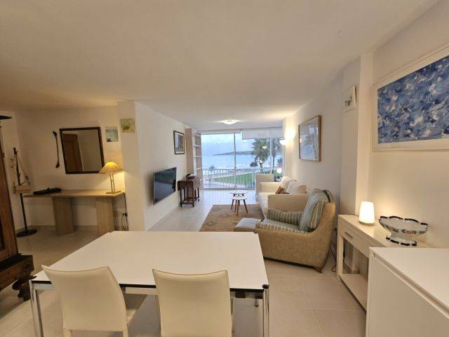 Zauberhaftes, modernes Apartment in der ERSTEN LINIE - in 20 m Strandzugang. Offener Schnitt, wobei der Balkon direkt zum Wohnraum angegliedert und voll verglast wurde, und bis auf ein Glaselement komplett aufzuschieben geht.