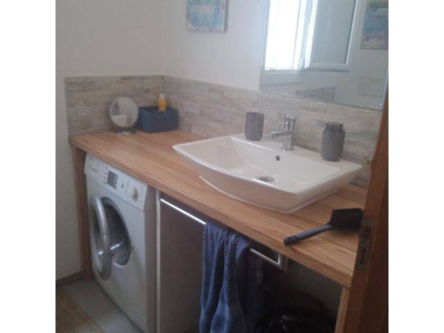 1 Badezimmer mit ebenerdiger Dusche, Waschtisch, WC und Waschmaschine