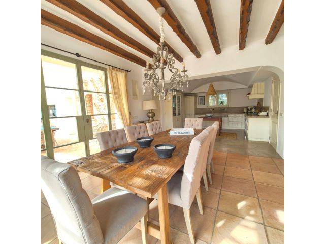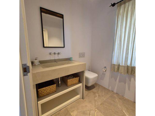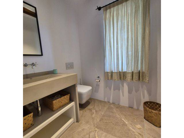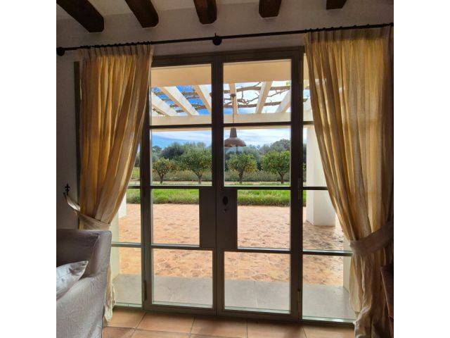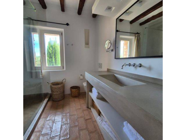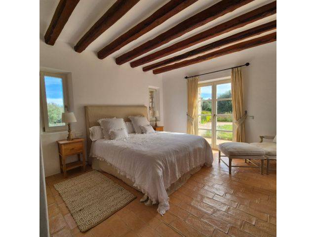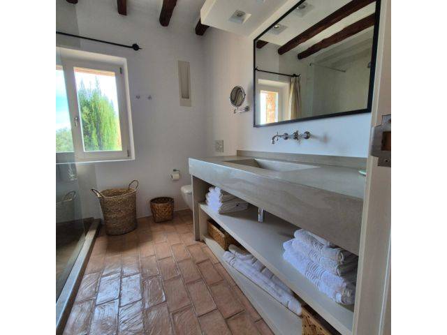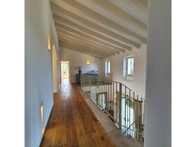 Imposante Natursteinböden mit polierter Oberfläche reflektieren das äußere Licht und vervielfachen das Raumgefühl, in harmonischem Kontrast zu wiedergewonnener Holzverwendung und Trockenmauern, die das authentischste Mallorca heraufbeschwören. Das Ergebnis ist ein eleganter, zeitloser neo-mediterraner Charakter.