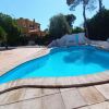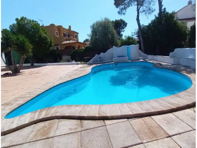 Ummauertes Grundstück von 321 m2 mit einem nierenförmigem Pool von 56 m2, überdachte grosse Südostterrasse und eine weitere mit Sommerküche und BBQ, schöne Steinsitzbänke, Aussendusche und viel Gartenanteil mit schattigen Bäumen und Pflanzen. Parking vor dem Haus.