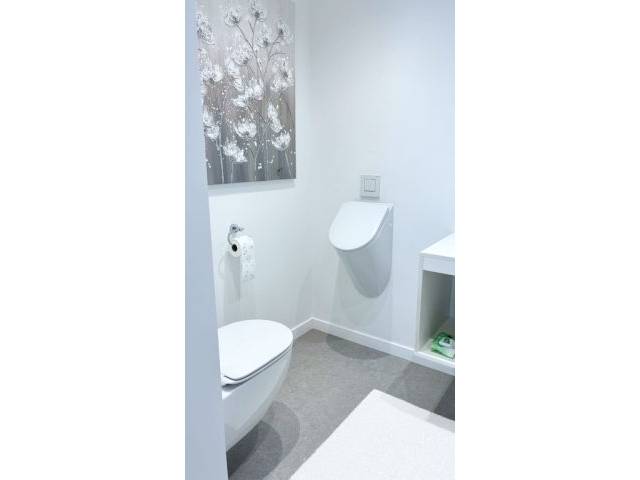 Ein modernes Gäste-WC rundet die Raumaufteilung ab.
