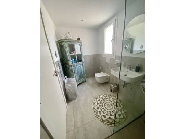 Im Obergeschoss befinden sich zwei weitere Schlafzimmer mit Einbauschränken sowie zwei weitere Duschbäder. Vom Obergeschoss gelangt man über eine Innentreppe auf die ca. 40 qm große Dachterrasse mit Meerblick.
