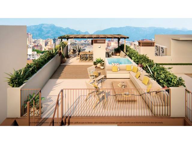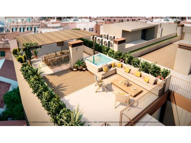 Das Juwel: Die Penthäuser: Wohnungen auf zwei Ebenen. Der Hauptbereich geht in die Terrasse über, während die obere Etage ein spektakuläres privates Solarium beherbergt, um Himmel, Sonne und die Brise von Palma in völliger Exklusivität zu genießen.