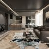 GLAM (Superlative Design): Höchste Raffinesse. Überlegene Eleganz durch dunkle Bodenbeläge (XTone Liem Black), markante Marmore, Grautöne und im Fischgrät verlegte Hölzer.
