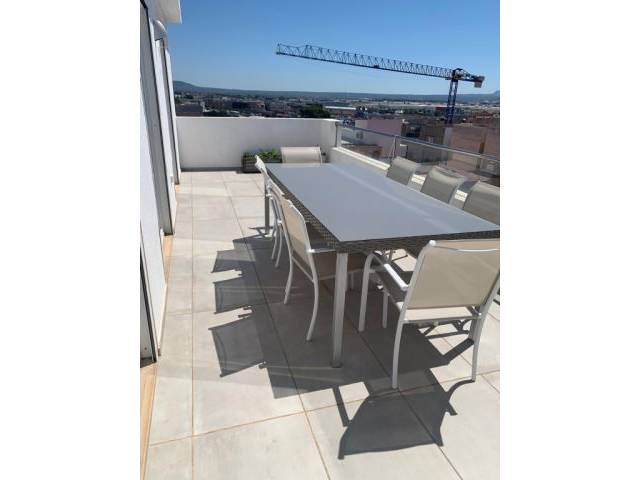 Von der Dachterrasse aus genießen Sie nicht nur Weitblick bis zum Tramuntana-Gebirge, sondern auch die Sicht auf die Flugzeuge – ohne störende Lautstärke. Die Höhe reduziert den Schall deutlich gegenüber dem Straßenniveau.