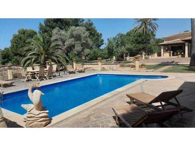 Aussebereich: Das ummauerte und umzäunte Grundstück von ca. 7.100 m2 hat ein automatisches Einfahrtstor, genügend Parkplätze zusätzlich einen halboffenem Carport von ca. 70 m2 für bis zu 4 Autos, einen wunderschönen und gepflegten Garten mit viel Wiesenbestand, vielen Palmen und Ziersträuchern. Antike Dekorationen und interessante Bereiche auf dem Grundstück runden das Ganze ab. Ebenfalls finden wir einen schönen Brunnen vor, ein interessanter Steingruppensitzbereich für bis zu 16 Personen, eine wunderschöne römische Brücke wo im unterem Bereich – über einige Steinstufen herab - sich grosse Säulen und Bögen sowie eine grosse unüberdachte Terrasse befindet.