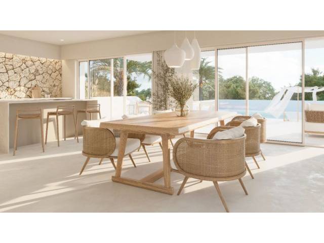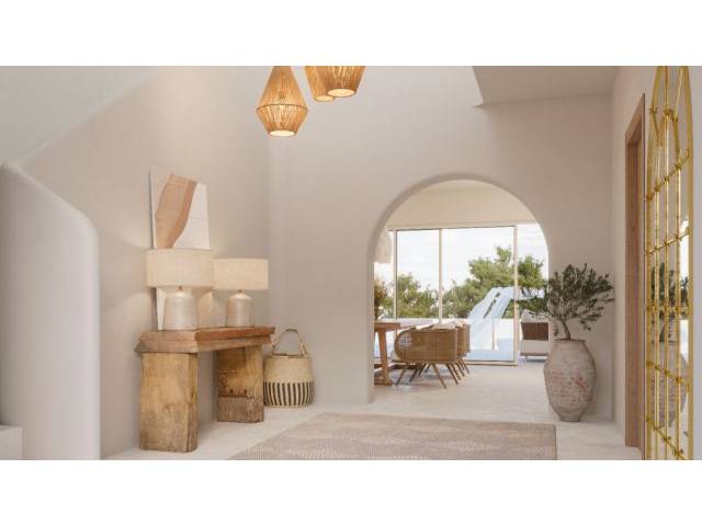 Die Architektur des Hauses ist eine Hommage an den charakteristischen ibizenkischen Stil von Cala d'Or, mit abgerundeten Wänden, Innenbögen und einer eleganten Kombination aus Stein- und mediterranen Gärten. Jede Ecke spiegelt die Essenz der Insel und ihre Küstenatmosphäre wider und bietet Ihnen ein einzigartiges Erlebnis im Herzen dieser charmanten Stadt.