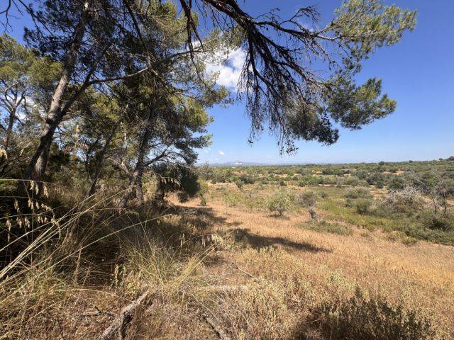 Das ummauerte grosse Grundstück von 22.937 m2 ist zu eiknem Teil hügelig und waldig und zu einem Teil eher flach mit nur wenig Strauchbestand und einigen Mandel und Feigenbaumbeständen.