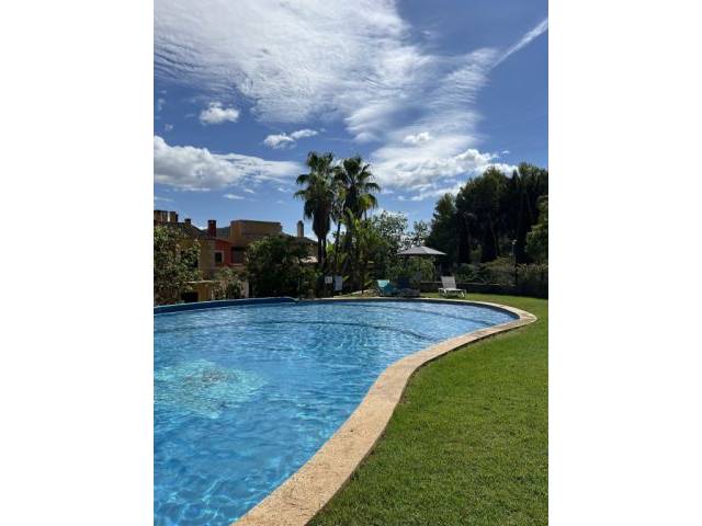 Eingebettet in eine liebevoll gestaltete, mediterrane Gartenlandschaft mit Palmen und blühenden Pflanzen entsteht eine ruhige, parkähnliche Atmosphäre. Zwei großzügige Poolbereiche mit separatem Kinderbecken stehen den Bewohnern zur Verfügung. Die Fassade des Gebäudes sowie der große Gemeinschaftspool wurden Anfang 2026 umfassend renoviert und unterstreichen den gepflegten Gesamteindruck der Anlage.