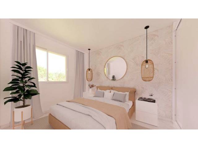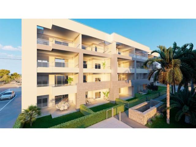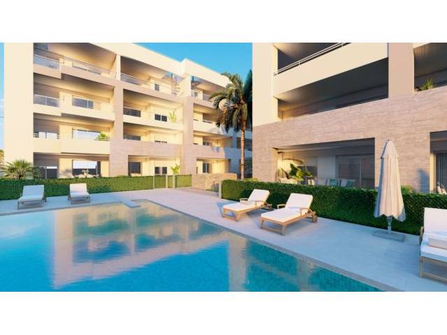 Gemeinschaftsbereiche: Schwimmbad mit Solarium, Gärten mit automatischer Bewässerung, LED-Außenbeleuchtung und Parkplatz mit Abstellraum inklusive.