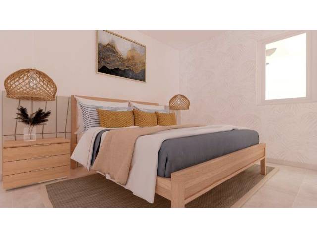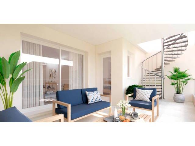 Dach und Oberflächen: Begehbares Dach mit Isolierung. Feinsteinzeugböden im Innenbereich und rutschfest im Außenbereich. Mörtelputz und Zwischendecken aus laminiertem Putz.