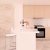 Küche: Maßgeschneiderte Möbel mit Anti-Fleckenharz-Arbeitsplatte und Edelstahlgeräten (Dunstabzugshaube, Backofen, Cerankochfeld, Geschirrspüler und No Frost-Kühlschrank).